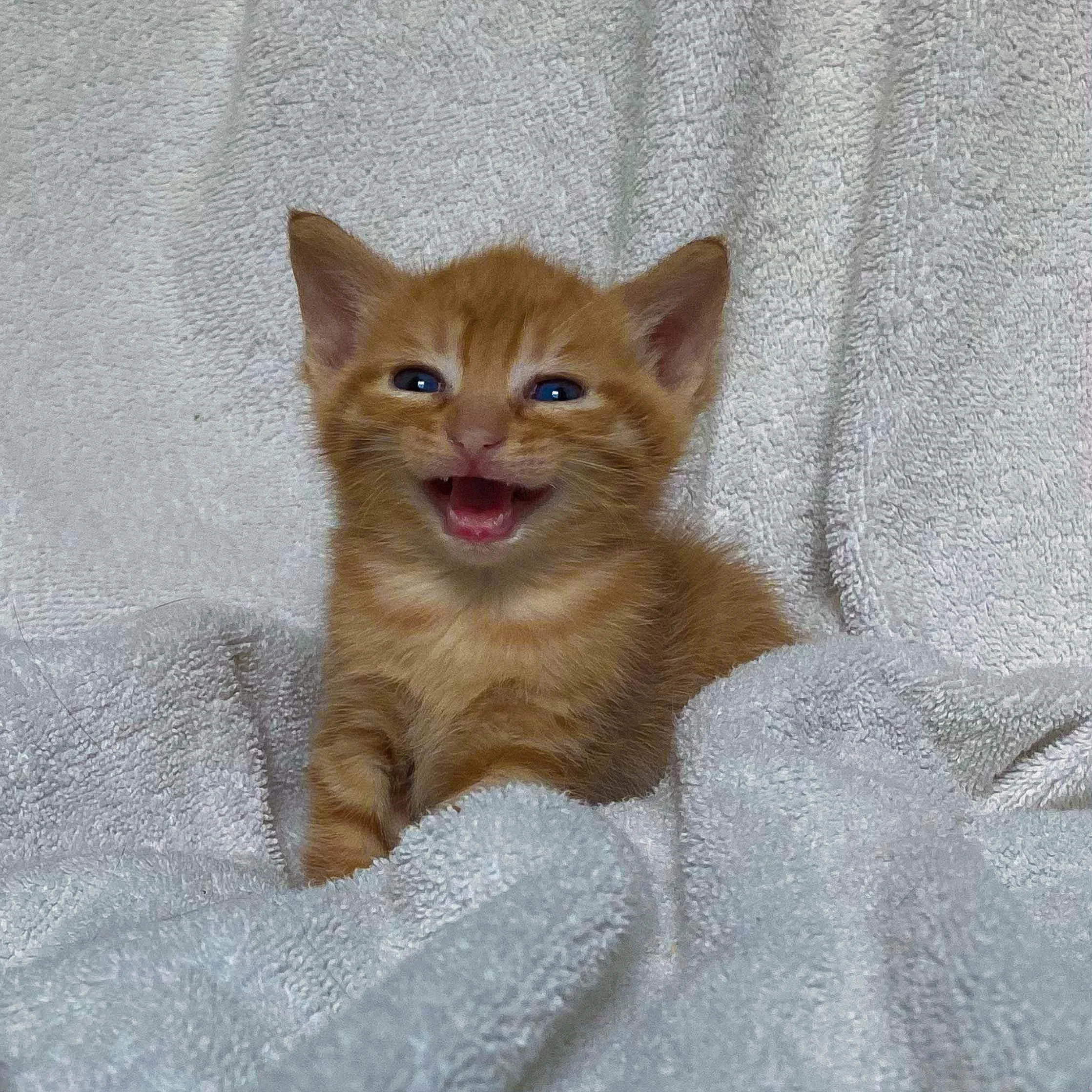 Do your movie nights need an orange-striped lap warmer? Sweetie boy Bing is the calmest (and chunkiest!) of his litter. With a chunky belly and a gorgeous pattern, he settles right down into your lap, purring all the while. His soft fur and wide, round eyes will make him the best cuddle buddy, up for anything as long as you’re there with him. Could he be the cuddly addition your household needs?