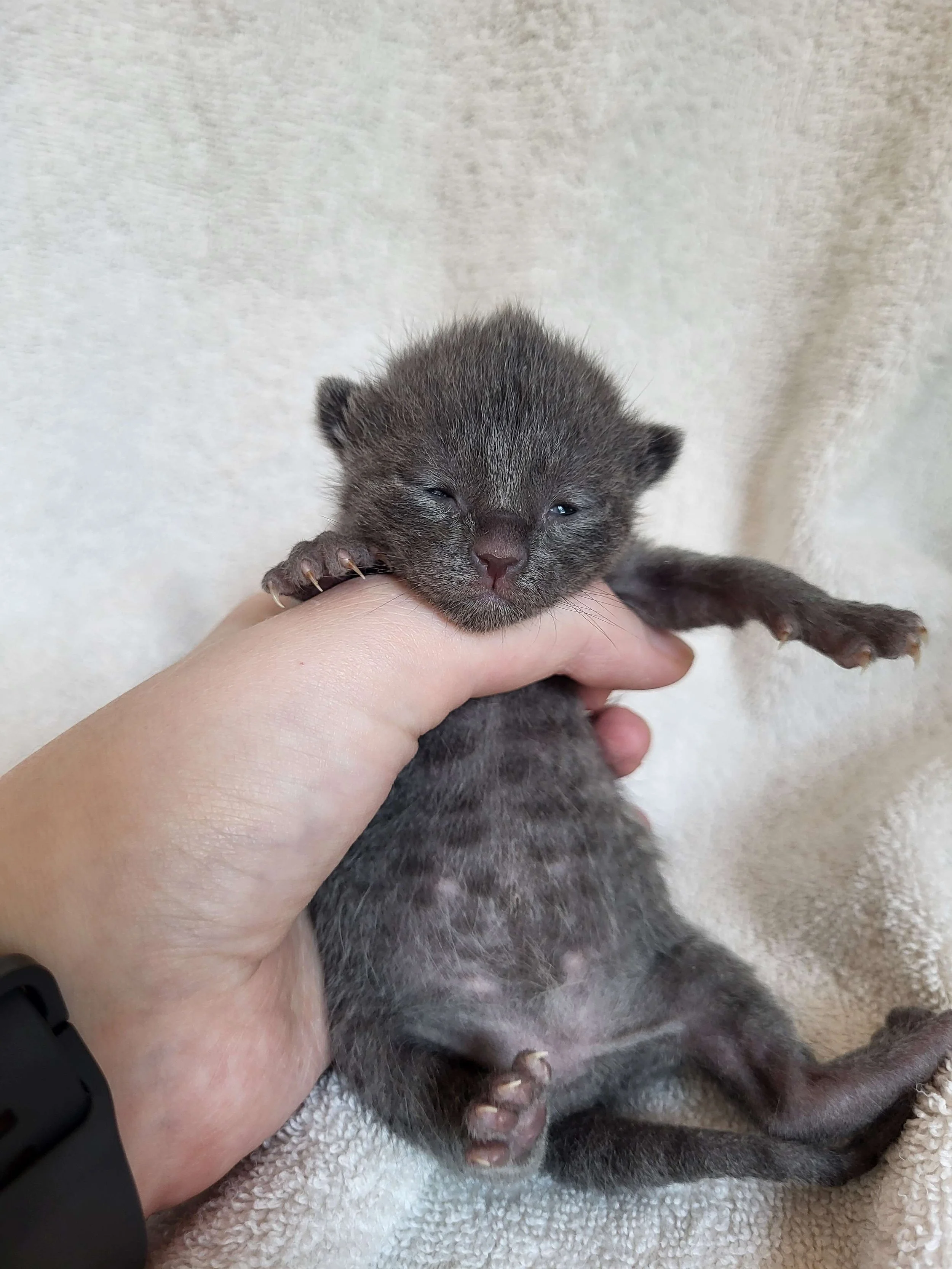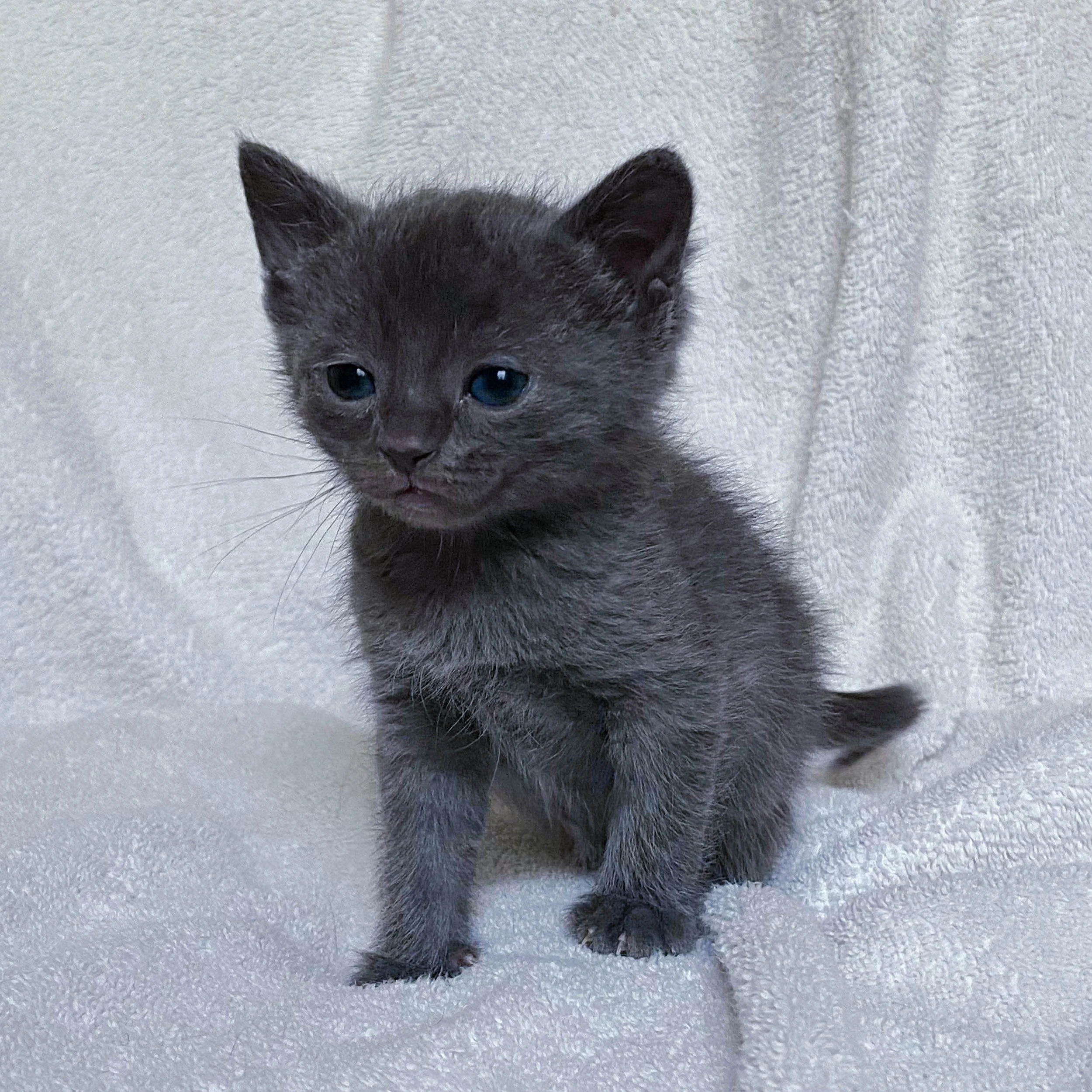 Focaccia is the perfect kitten—soft and snuggly with the cutest little voice. She’s often overshadowed by the big personalities of her siblings, but she’s just as deserving of love! Her dilute blue pelt and soft stripes hint at secrets hidden within—will you be the one to crack this kitten’s shell?